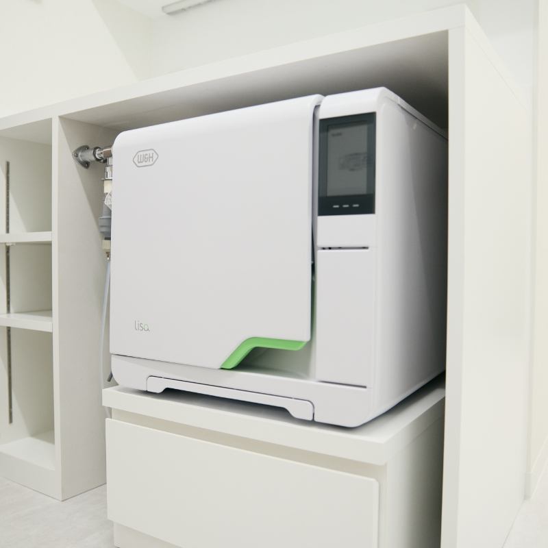 当院は、見えない部分の衛生管理をとても重視しています。その一環として、ヨーロッパ規格クラスBに準拠した高圧蒸気滅菌器「Lisa(リサ)」を導入しています。
